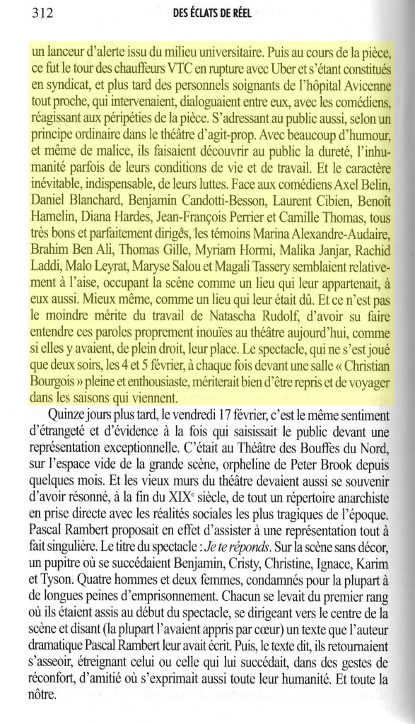 Natascha Rudolf et Laurent Cibien ont retraduit et mis ce texte en résonnance avec trois terrains de luttes actuelles : les chauffeurs VTC en guerre contre Uber, les lanceurs d’alerte dans le domaine professionnel, les soignants en lutte pour la défense de l’hôpital public.